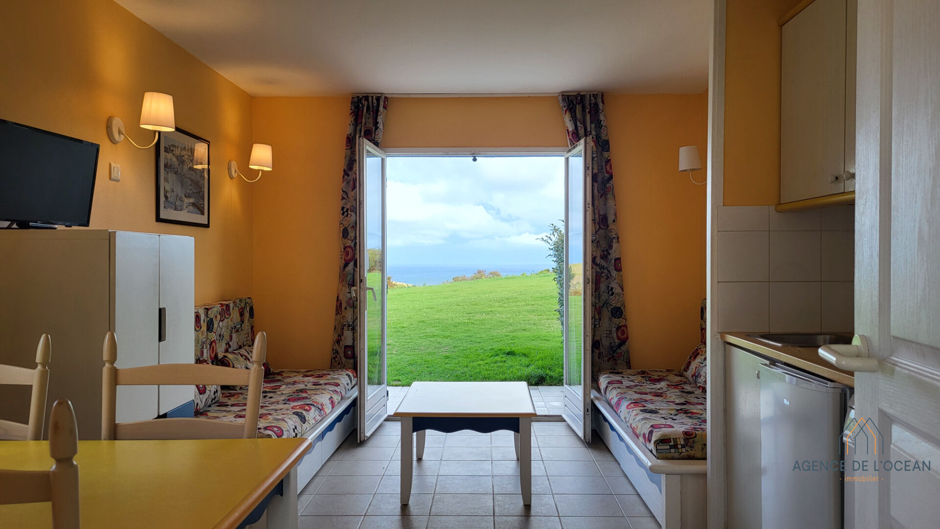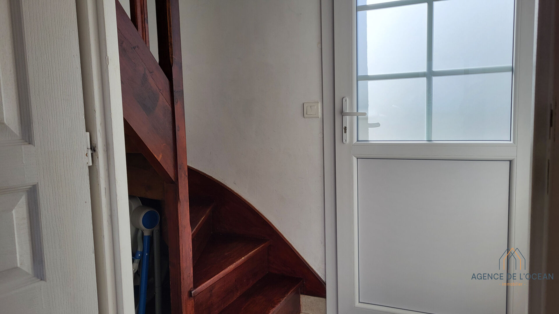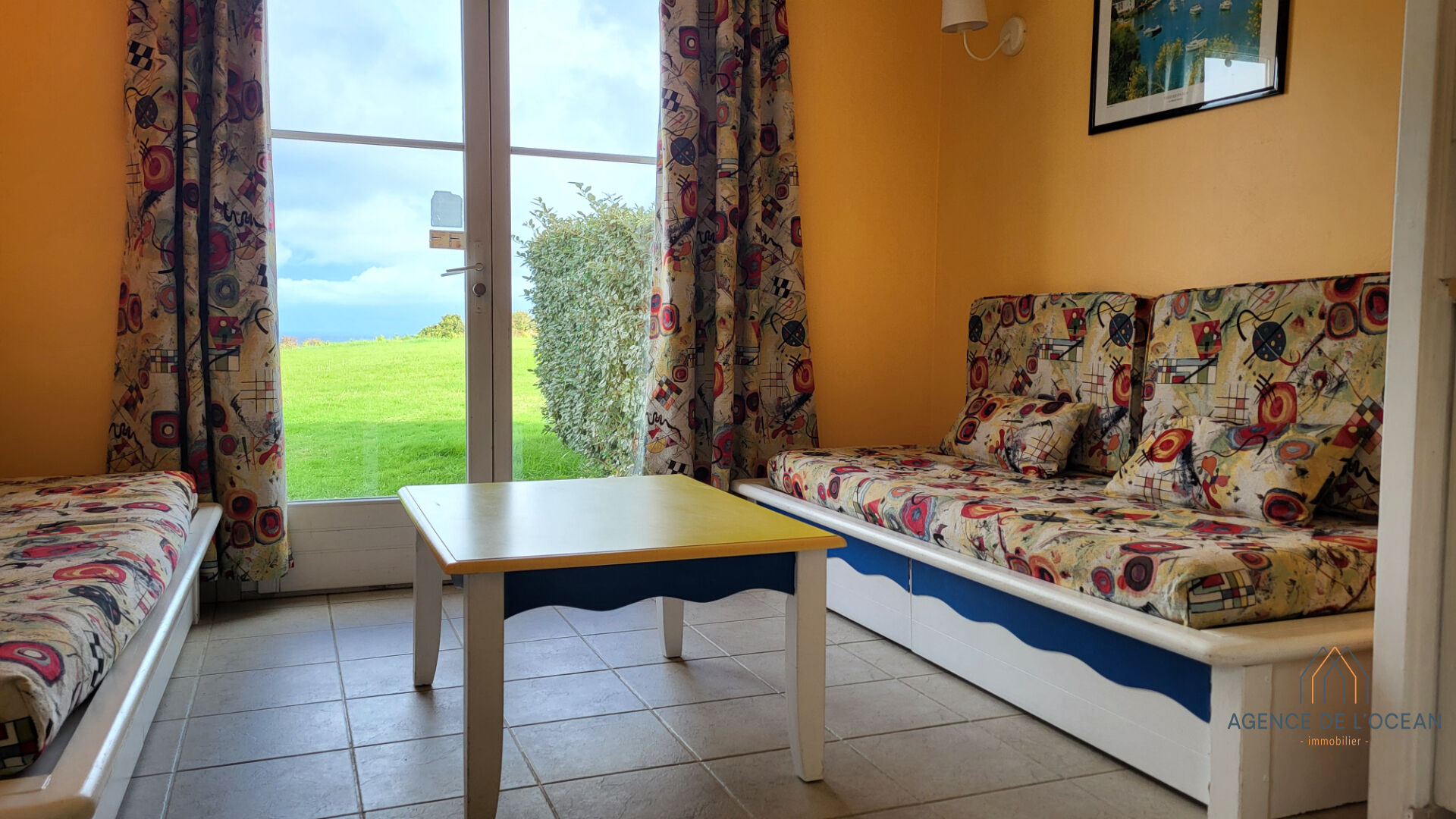 Sur la commune de Locmaria, dans une résidence avec piscine chauffée, située à 200 mètres de la plage de Port Maria et à proximité immédiate des commerces, cette petite maison mitoyenne d'un coté, comprend au rez-de-chaussée une entrée, un WC, une pièce de vie avec cuisine donnant sur une terrasse avec une très belle vue mer. A l'étage : un palier avec rangement, une salle d'eau et une chambre avec un accès extérieur. Sous l'escalier, une remise de 3m² (5.17 % honoraires TTC à la charge de l'acquéreur.)
