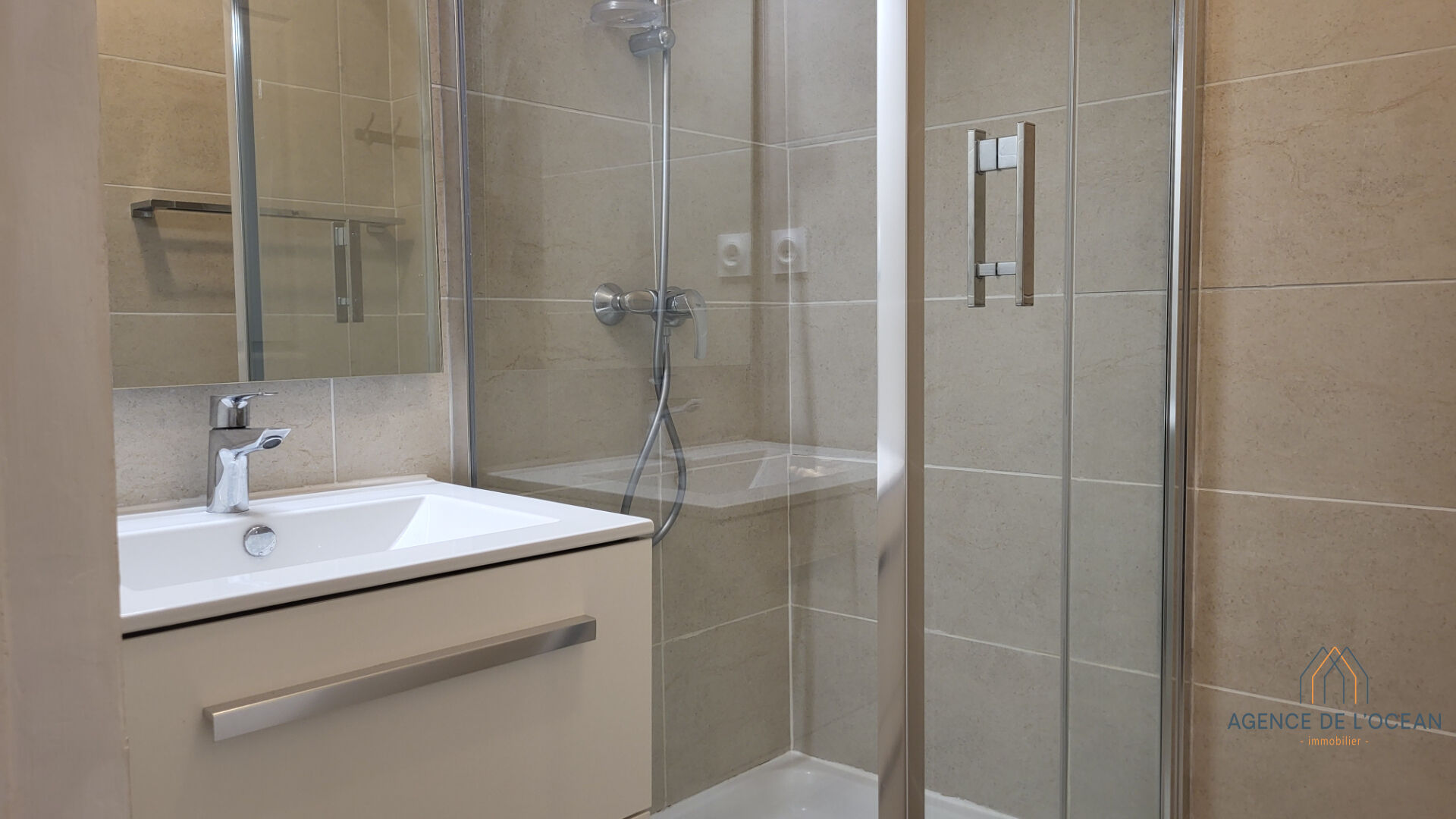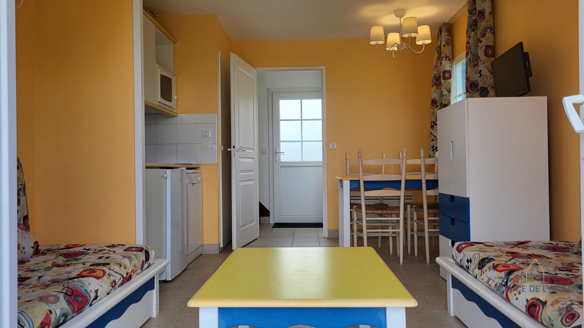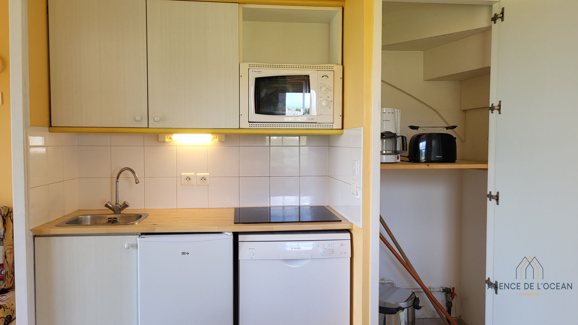 Sur la commune de Locmaria, dans une résidence avec piscine chauffée, située à 200 mètres de la plage de Port Maria et à proximité immédiate des commerces, cette petite maison mitoyenne d'un coté, comprend au rez-de-chaussée une entrée, un WC, une pièce de vie avec cuisine donnant sur une terrasse avec une très belle vue mer. A l'étage : un palier avec rangement, une salle d'eau et une chambre avec un accès extérieur. Sous l'escalier, une remise de 3m² (5.17 % honoraires TTC à la charge de l'acquéreur.)