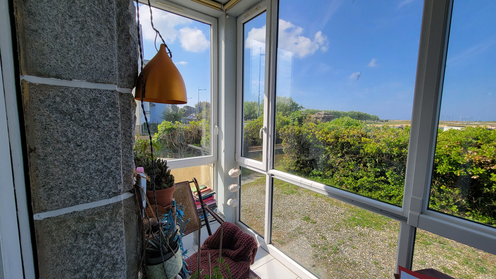 La maison a beaucoup de charme et la loggia, et les salons sont exposés à l'Ouest (soleil couchant) avec une vue sur le plan d'eau et la rivière d''Etel.